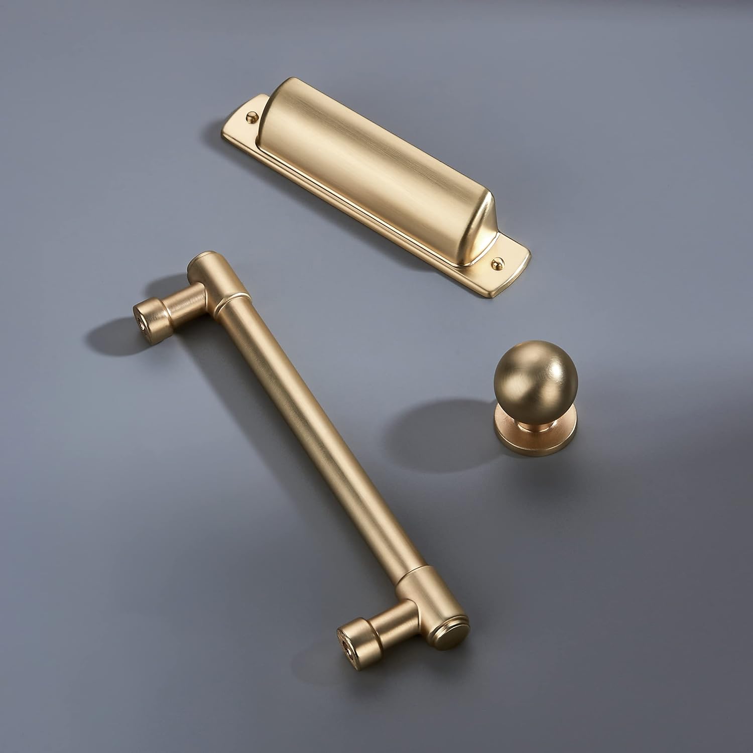 10 Pack 5 Inch(128mm) Brushed Brass Cabinet Pulls Warm Gold Cabinet Handles Heavy Duty Solid Cabinet Hardware for Cupboard Drawer Pulls Dresser Handle